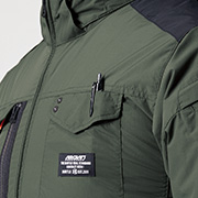 ファン取り付け位置がサイドに変更し、風が体の隅々まで駆け巡ります。フックハンガー、ランヤード装着ホールを配備しフルハーネスに完全対応。ヘルメットの対応する大型フードは用途に合わせて着脱可能です。
