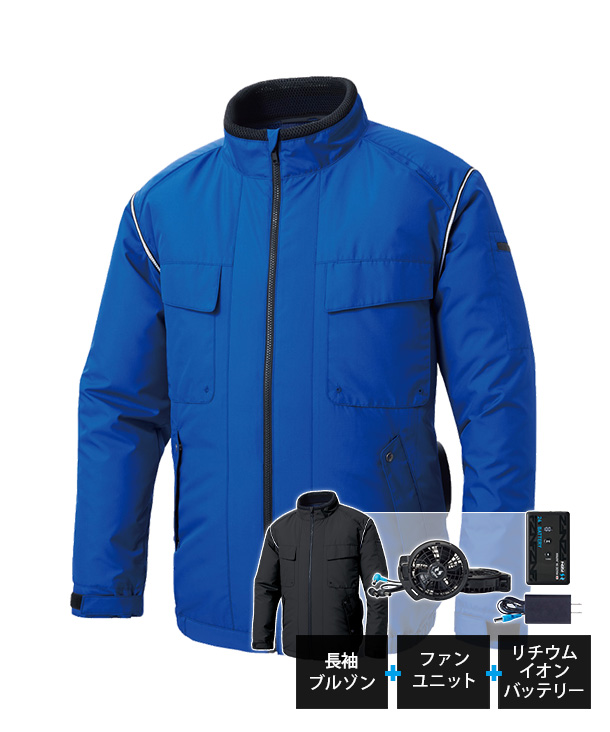 安心・安全の空調風神サンエスの人気商品、KF92411-K24 再生ポリエステル素材使用 長袖エコブルゾン ファン・バッテリーセットです。