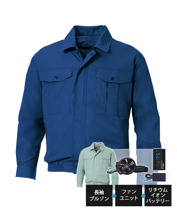 安心・安全の空調風神サンエスの人気人気商品、KF90540N-K24 深みのある色味がクールな売れ筋 長袖ブルゾン ファン・バッテリーセットです。