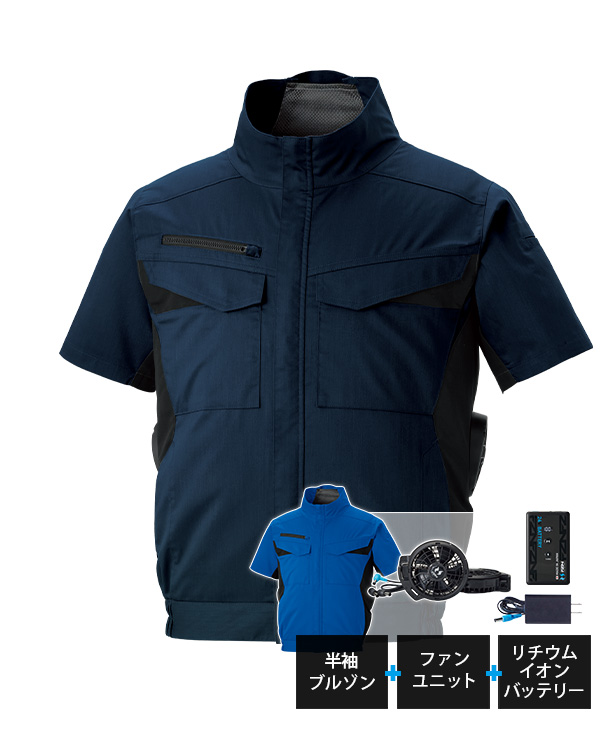 安心・安全の空調風神サンエス KF92650-K24 JIS T 811適合 制電・エコ半袖ブルゾン ファン・バッテリーセットです。