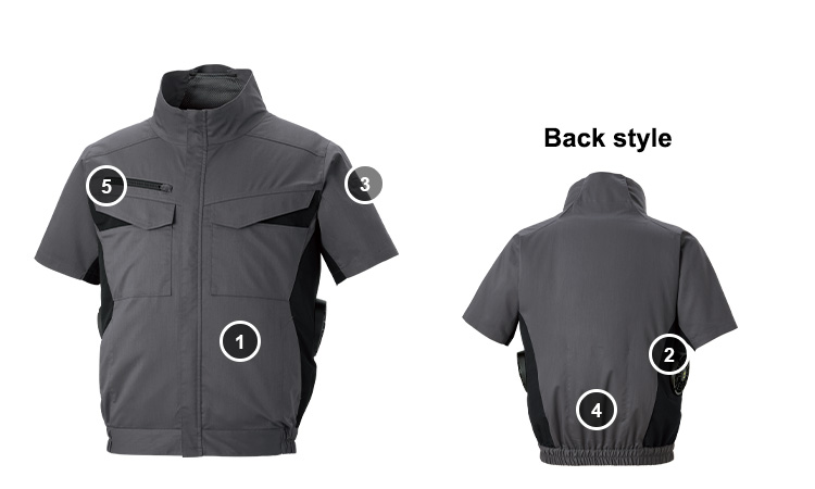 伸縮性や弾力性に優れた素材で動きやすく快適な着心地。運転席の背もたれに干渉せず、外気が取り込めるサイドファン仕様。