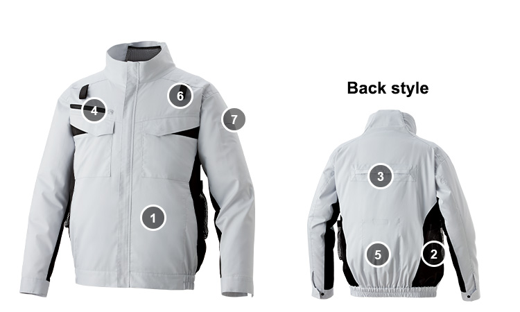 伸縮性や弾力性に優れた素材で動きやすく快適な着心地。運転席の背もたれに干渉せず、外気が取り込めるサイドファン仕様。