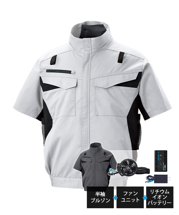 安心・安全の空調風神サンエス KF92650G-K24 JIS T 811適合 制電・エコ半袖ブルゾン ファン・バッテリーセットです。