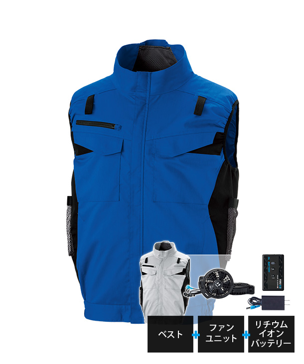 安心・安全の空調風神サンエス KF92652G-K24 JIS T 811適合 制電・エコベスト ファン・バッテリーセットです。
