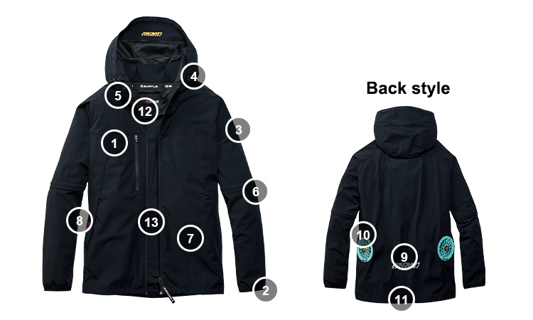 6袖2WAYファスナー仕様