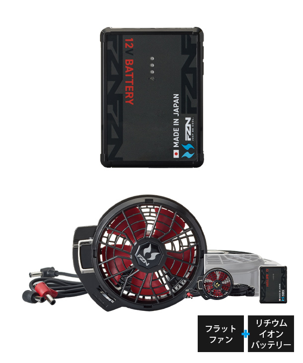 2026年新製品。空調風神服 安心・安全 JAPAN LABEL 12V仕様 フラットファン・バッテリーのセットです。