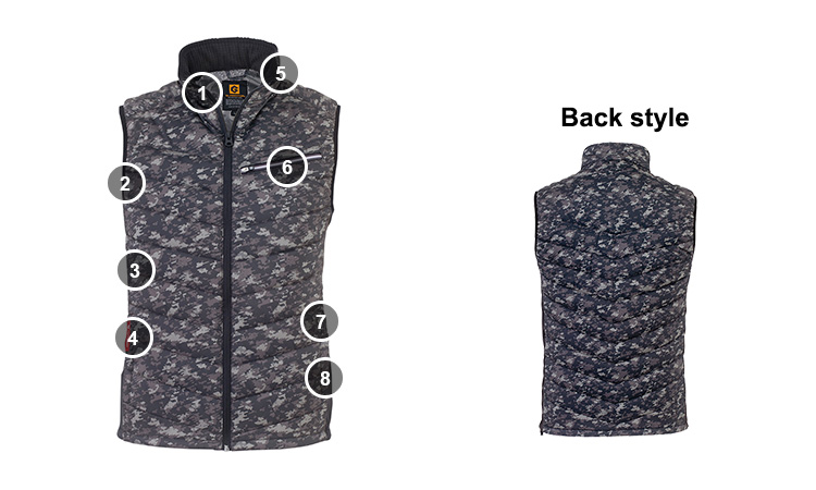 こちらの電熱ウエアは 個性的なプリントを施した、電熱ベストです。
