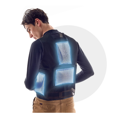 そのアイスベストですが、それだけで使っても当然効果はあるのですが、空調服と合わせて使うと、その効果はさらに大きくなります。空調服のインナーとして使うことで、冷たい空気が空調服内を循環します。